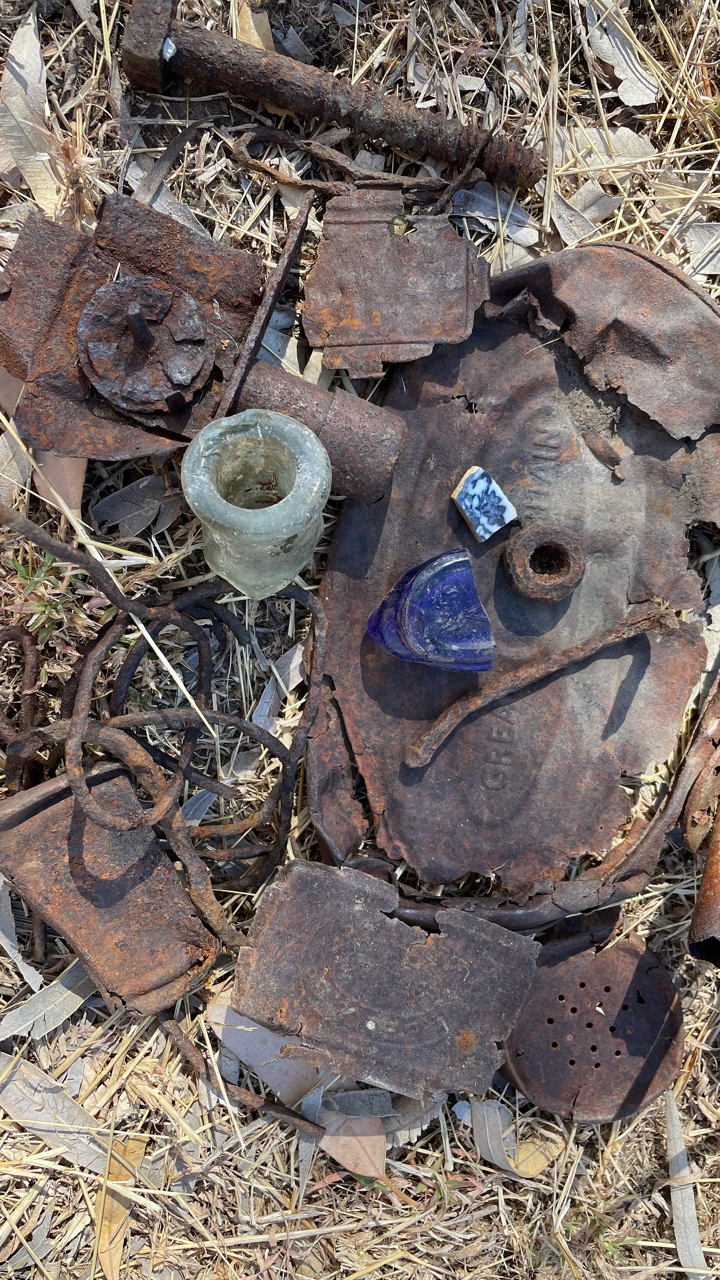 I also pull out my detector to run it over the site of the old shanty town from the 1890s just outside the main town. I never find anything of value but it you don’t try you never know. The area has been bulldozed, the ground is rock hard but I find pieces of detritus from back in the day – bully beef, herring, and match tins, bits of glass and pottery. I’m interested in finding imprints of brands and production places. I’m fascinated by the purple/mauve glass and the story behind it. It has changed to that colour in the sun as a result of manganese being used in its production.