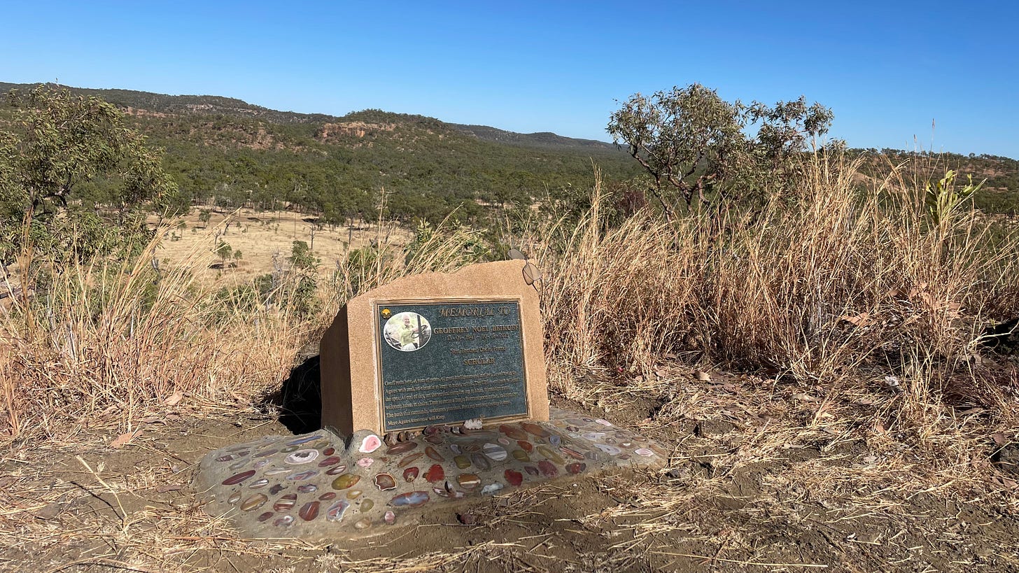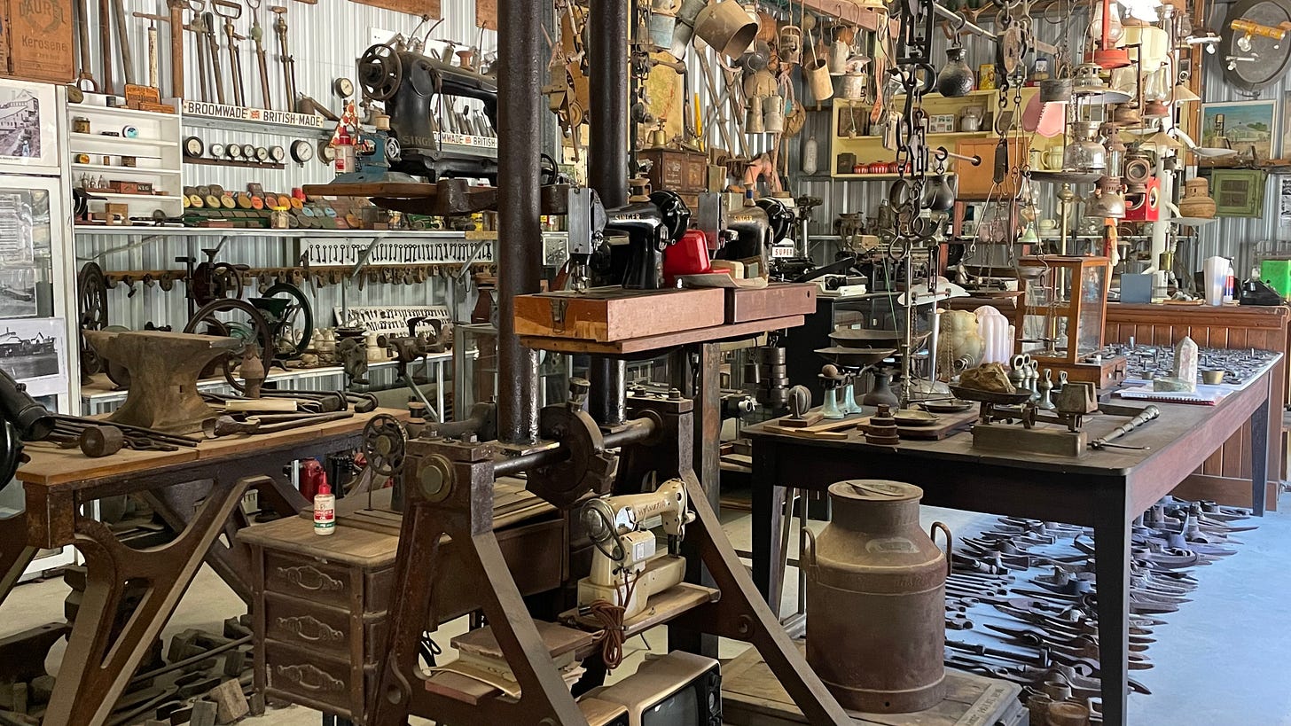 The Wheelbarrow Way, from Atherton to Herberton, Irvinebank, and Chillagoe (all 1800s mining towns), reignites the desire for fossicking rocks, minerals, gemstones and fossils. The miners that proceeded me were looking for tin, silver, gold and copper. The museums at Herberton and Irvinebank, and Pete’s Shed show the history of the search for minerals in the area. I see rock specimens to inform me what I am looking for. The excitement intensifies. I clamber over the countryside inspecting many of these old mines, being careful to avoid the open shafts dotted about the hills.