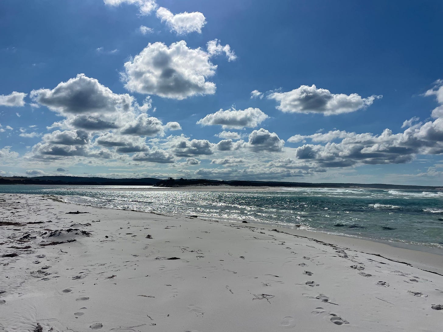 It is Autumn. I revel in the clear, pure Tassie air. All is still, the reflections are pristine. The light is mesmerising. The clarity of colours, the muted evening shades, the fierce sunlight. I cloud watch, the cotton-wool balls against a cerulean sky. Then dark clouds roll in, pre-warning of a storm, with strong winds that whip up the sand that sandpaper my legs as I walk along the shore, the surges and swells battering the dunes.