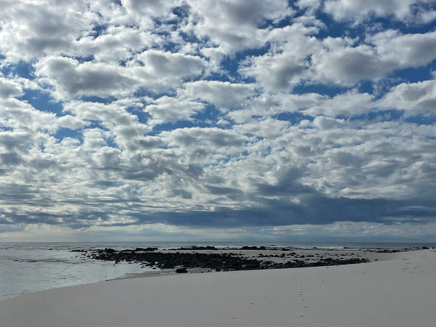 No matter, it is why I find myself at Policeman’s Point on the East Coast of Tasmania, three hundred kilometres from home, on a week-long birthday treat, a solo retreat. I’m camped in my Troopie by the sea with bush, and birds, wrens and Tasmanian thornbills, flittering in the scrub behind me. I swim twice daily in the shallows of Anson’s Bay. I walk the lagoon and along the powerful shores of the Bay of Fires, the Tasman Sea. I observe the kelp, the washed-up battered shells, the sea-birds - pacific gulls, pied oyster catchers, hooded plovers, and red necked stints teasing with the surging waves. The same cohort that was here last visit.